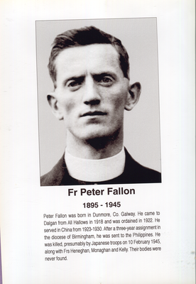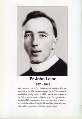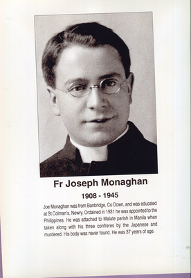 Columban Martyrs – Philippines: In 1943, Father Francis Douglas was taken into custody by the Japanese and severely tortured. His body was never found. Fathers Patrick Kelly, John Lalor, Peter Fallon, Joseph Monaghan & John Heneghan died in Malate during the war in 1945.