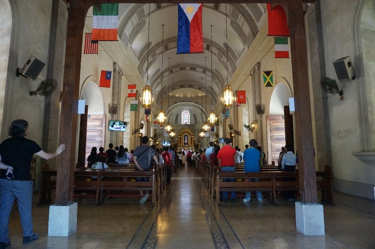 The flags hanging inside the church represent the different countries where Columban Mission was/is present