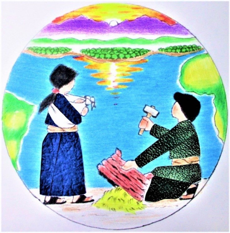 I drew Mary and Joseph within an image of our planet – the temporary shelter of all God’s creatures. Above Mary and Joseph I drew the mountainous habitat of the Subanens which provide them with a safe and bountiful home. It recognizes that just as Joseph made the manger a safe place for Jesus, the Subanens need to ensure a safe and healthy environment for their children.